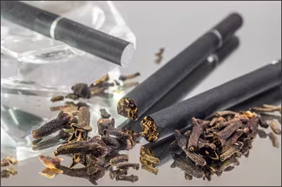 Kreteks, or clove cigarettes, are imported from Indonesia and contain tobacco, cloves and other additives. Both of these products are not safe alternatives to cigarettes. Regular kretek smokers have 13 to 20 times the risk for abnormal lung function (e.g., airflow obstruction or reduced oxygen absorption) compared with nonsmokers.19,20