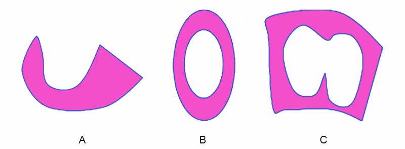 Circumferential clasp: It is commonly indicated for a free-standing mesially-tipped distal abutment tooth. This claps design helps in eliminating the broad flat cantilever and strengthens itself by encircling the tooth (Figure 8B). When the circumferential clasp encircles multiple teeth, it is termed as a "continuous circumferential clasp” (Figure 8C). The continuous circumferential clasp design helps in improving its rigidity.16