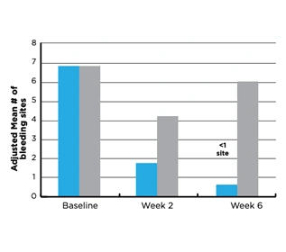 Both groups showed statistically significant reductions in bleeding sites from Baseline (P<0.0001).