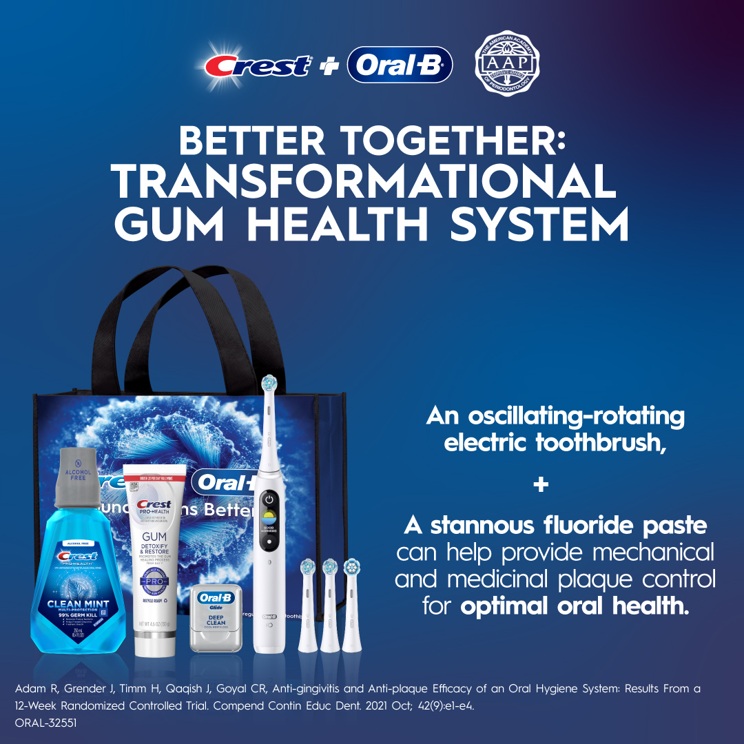 Crest + Oral-B’s Transformational Gum Health Electric Rechargeable System can transform patient gum health starting day 1. In a clinical study, 100% of patients moved to a state of healthy gums after just 12 weeks of use.