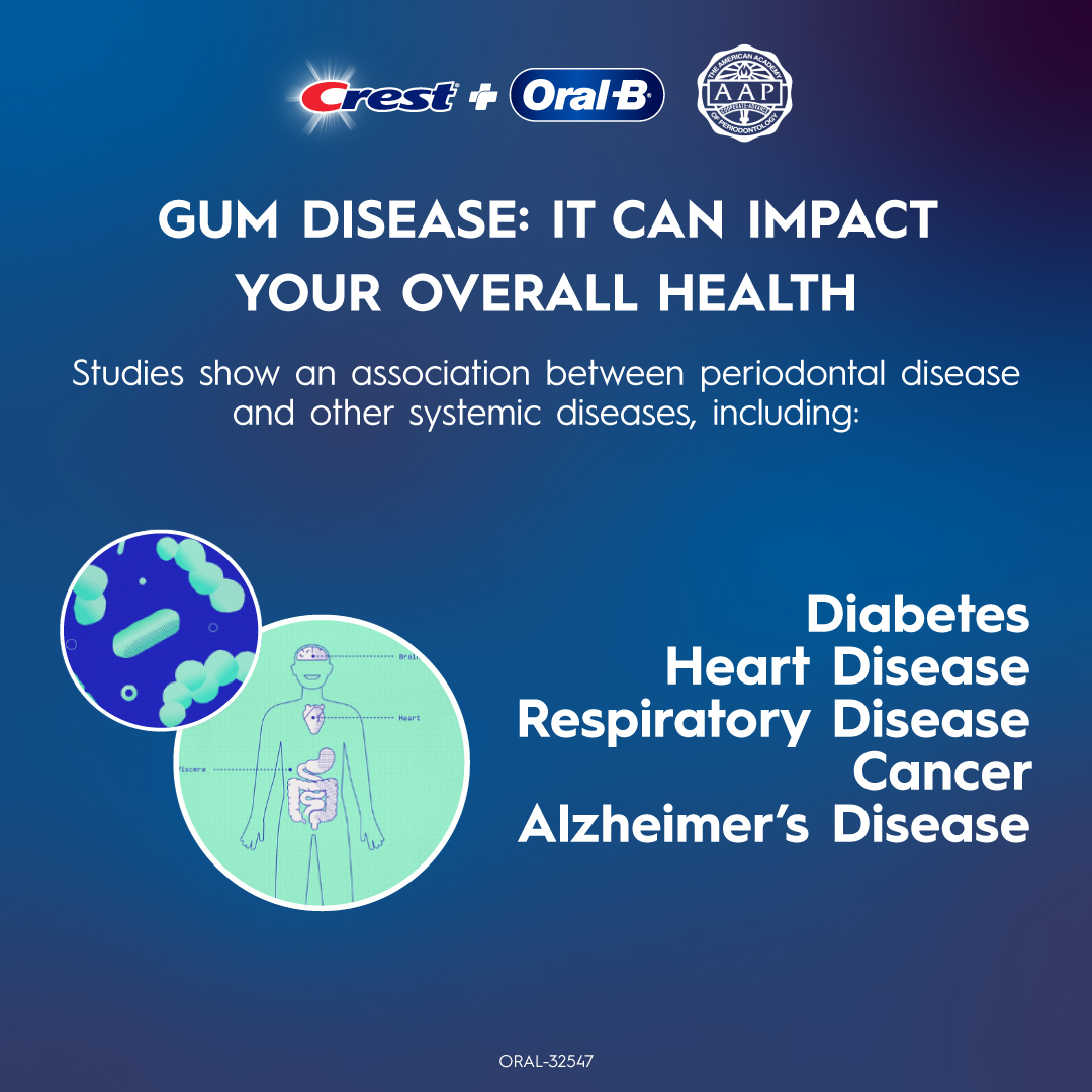 Left untreated, harmful plaque bacteria can lead to periodontitis — which is associated with conditions like cardiovascular disease, diabetes, pregnancy complications, and Alzheimer’s disease.